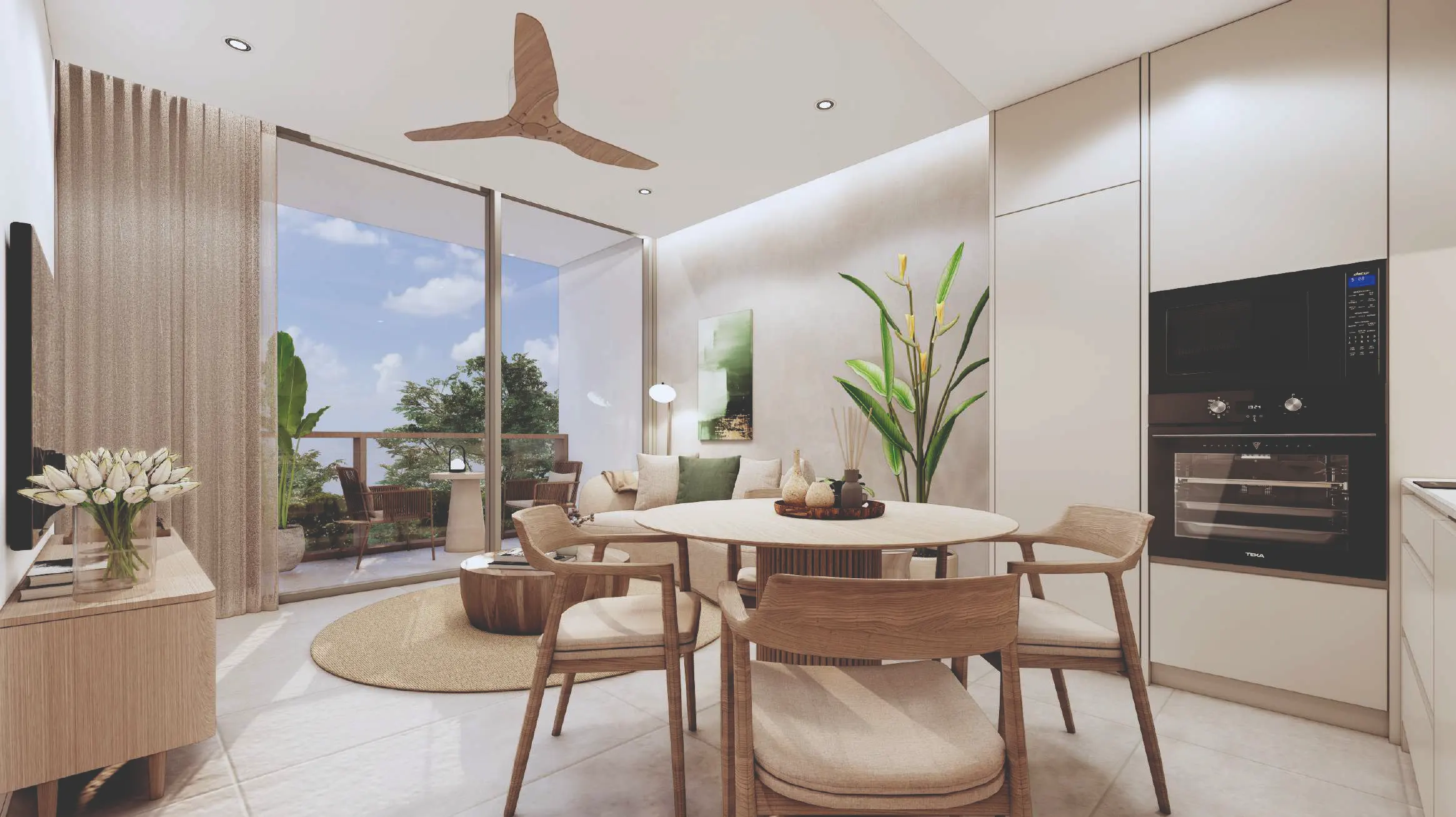 Резиденция с тремя и четырьмя спальнями, каждая из которых оснащена индивидуальным балконом, гардеробом, а также из гостиной имеется прямой выход на общую террасу